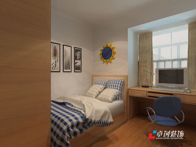 書(shū)房效果圖:此款書(shū)房設(shè)計(jì)就比較簡(jiǎn)單了,房子主人不喜歡書(shū)房有太多的修飾,所以選擇了比較簡(jiǎn)單實(shí)用的一款設(shè)計(jì),看起來(lái)比較舒服、大方。
