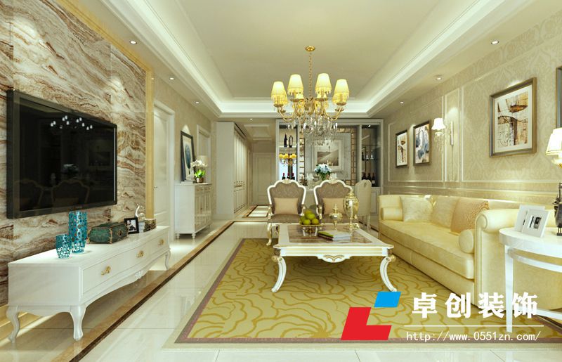 綠城玫瑰園130㎡--歐式風(fēng)格裝修設(shè)計(jì)客廳效果圖,合肥裝修公司,合肥裝飾公司