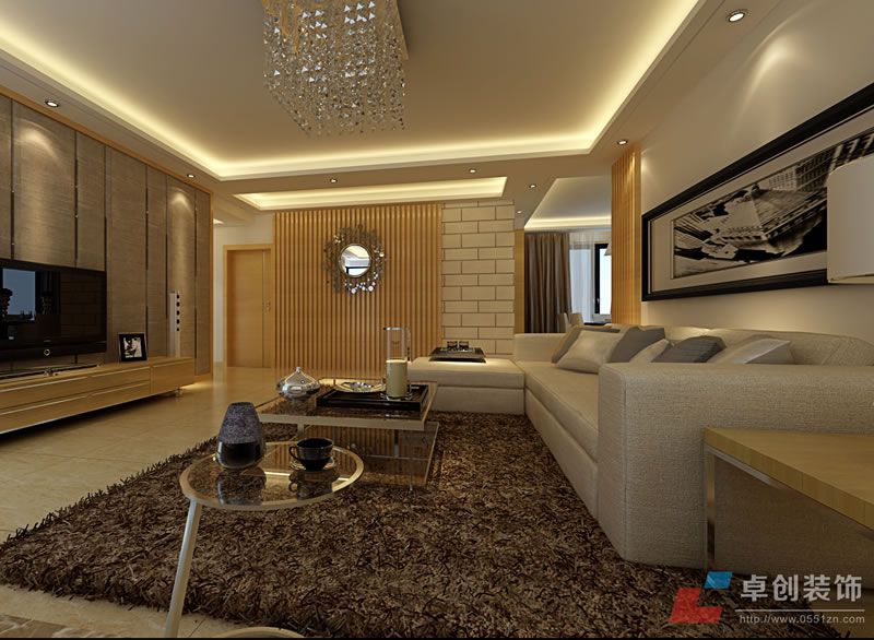 客廳裝修效果圖:簡單的沙發(fā)、茶幾,完全與現(xiàn)代簡約的風(fēng)格相輔相成,使整體看起來十分協(xié)調(diào)。