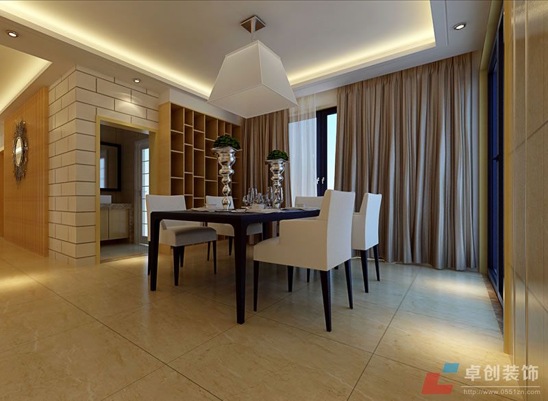 餐廳裝修效果圖:四四方方的餐桌餐椅,黑白色的搭配別有一番美感。