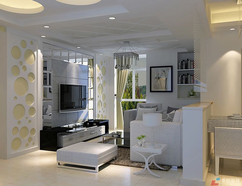 電視背景墻的設(shè)計很獨(dú)特新穎,沒有很復(fù)雜?蛷d的色彩運(yùn)用也很不錯,白色中有一點(diǎn)綠色植物的襯托,顯得更加干凈。