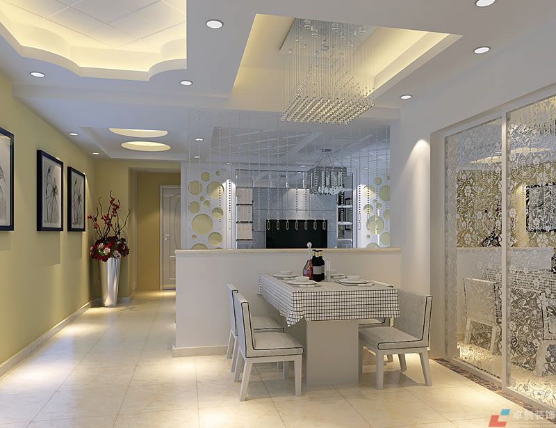 餐廳這樣的設(shè)計方便家人在用餐的時候也可以觀看電視新聞,整體白色的設(shè)計簡單大方。