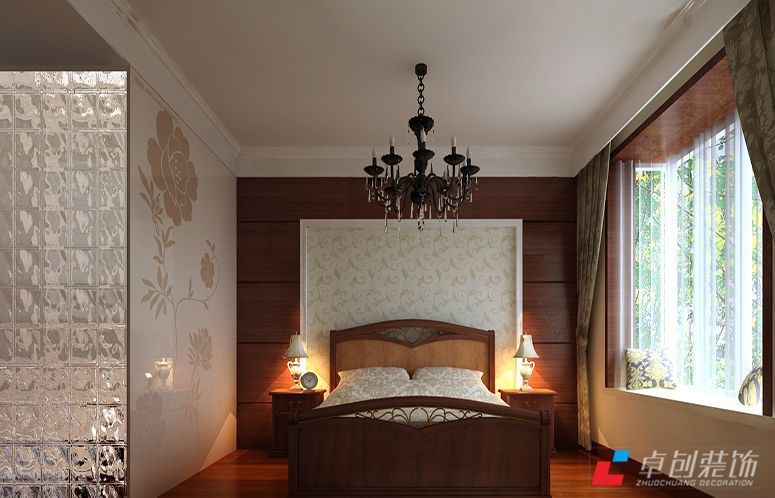 臥室效果圖:居室在色彩方面秉承了傳統(tǒng)古典風(fēng)格的典雅和華貴,但與之不同的是加入了很多現(xiàn)代元素,呈現(xiàn)著時(shí)尚的特征。