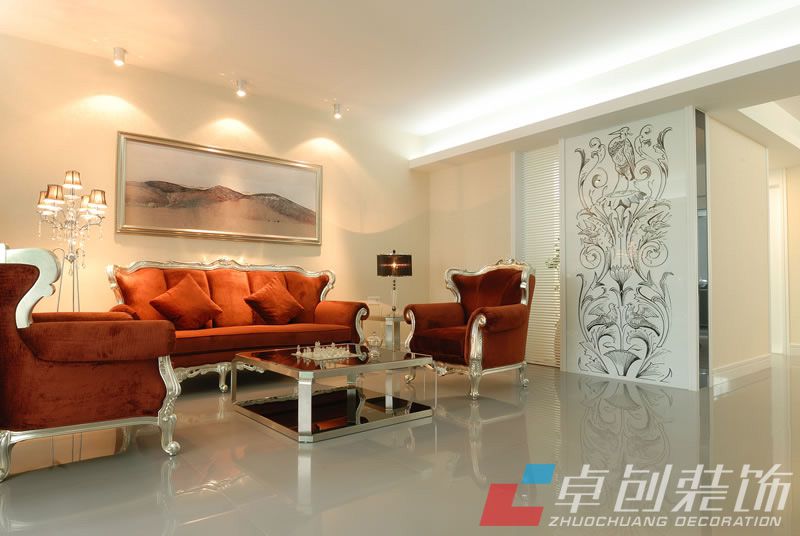 沙發(fā)背景墻效果圖:簡(jiǎn)單的吊頂處理,裝飾元素少,現(xiàn)代風(fēng)格家具與完美的軟裝配合,顯示出美感。