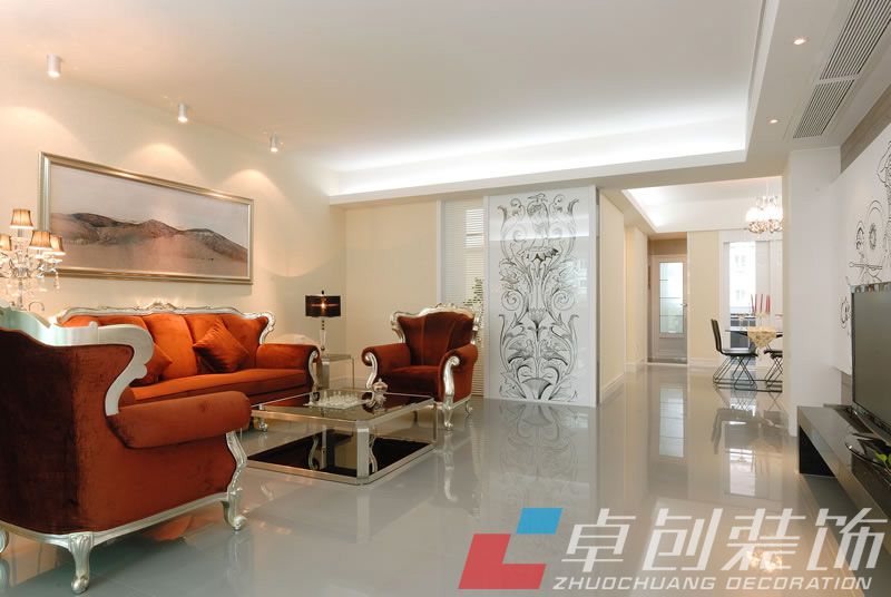 客廳效果圖:大大的玻璃移門簡(jiǎn)潔大方,提升空間視覺效果,簡(jiǎn)約而不簡(jiǎn)單。