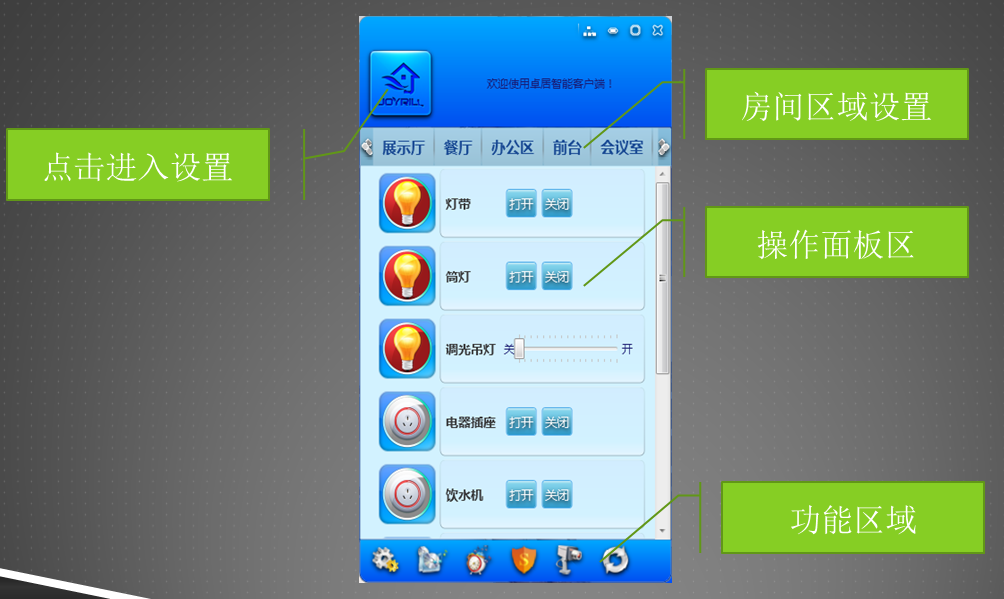 無論在家或者在辦公室使用電腦鼠標(biāo)輕松點(diǎn)擊,就可實(shí)現(xiàn)所有燈和電器的智能控制,功能更強(qiáng)大,控制更方便!休閑娛樂,學(xué)習(xí)工作,其樂融融;智能生活,時(shí)尚潮流!
